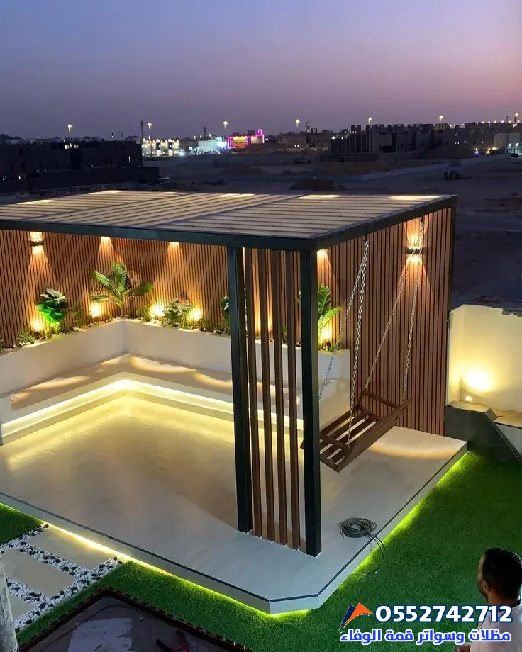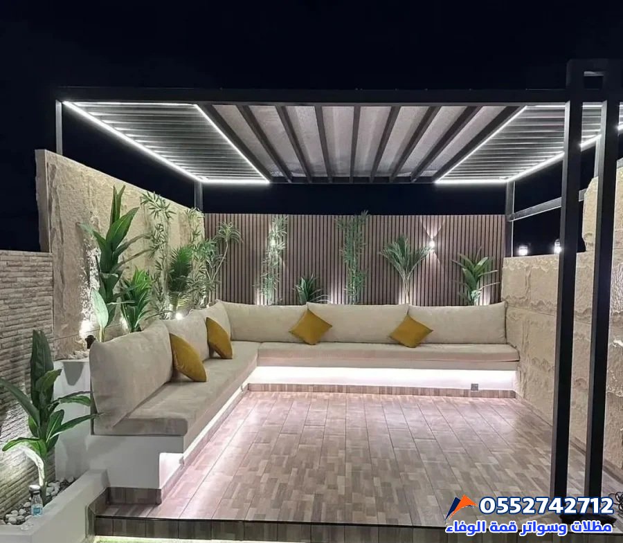 مظلات حدائق وجلسات خارجية تعطي مظهرًا فخمًا ومريحًا.