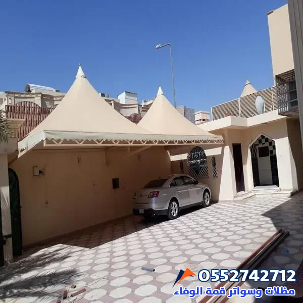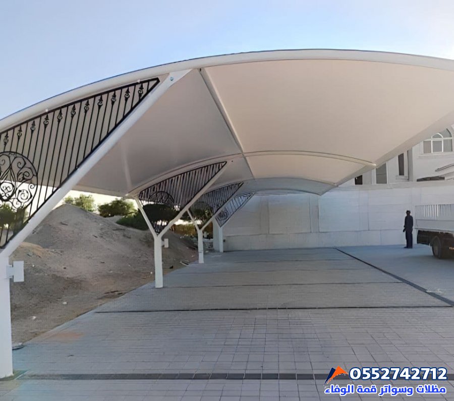 كل مظلة تُنفّذ وفق مساحة المكان لتناسب تصميم الواجهة وتحمي السيارة من حرارة الشمس والأمطار والغبار.