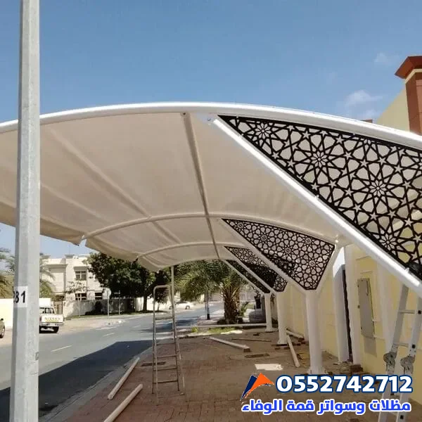 خدمة تركيب مظلات وسواتر الأرطاوية من مؤسسة قمة الوفاء بأفضل أنواع الحديد واللكسان، نقدم حلول متكاملة لتظليل السيارات، الحدائق، والمباني السكنية والتجارية، مع ضمان الجودة وطول العمر.